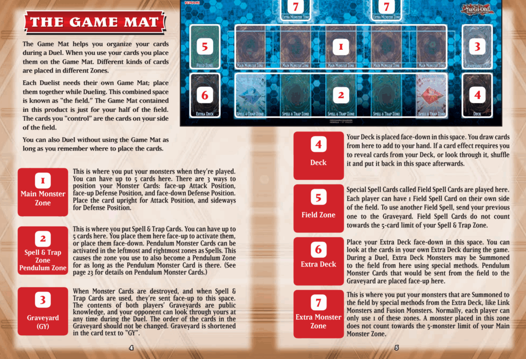 A duel is played on a designated playmat with specific zones for your cards: