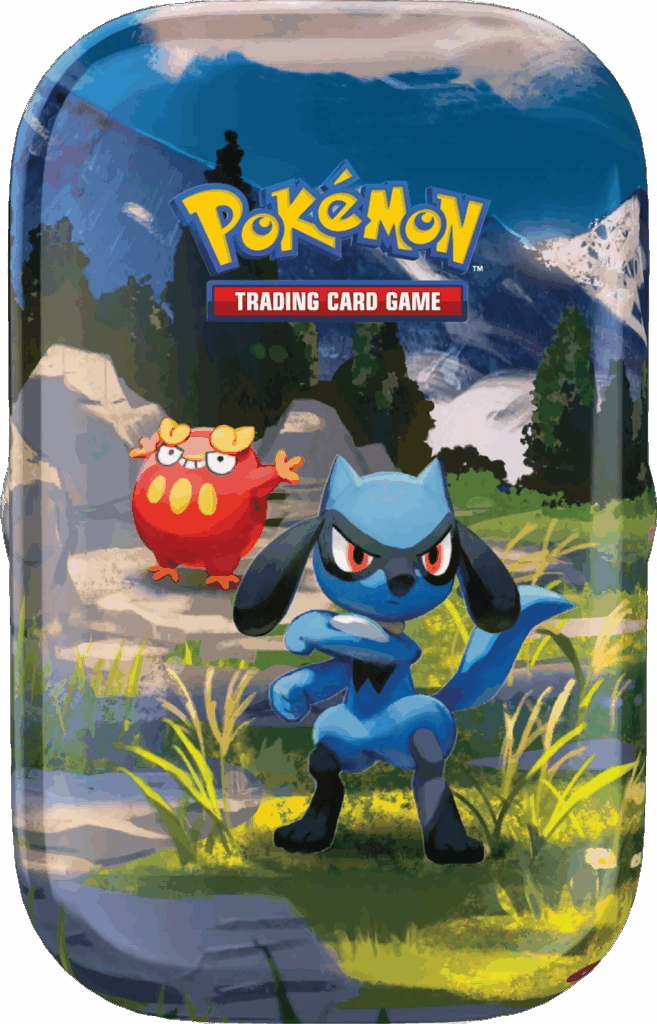 - Mini Tins: Five different collectible tins, each containing 2 booster packs and a sticker sheet.